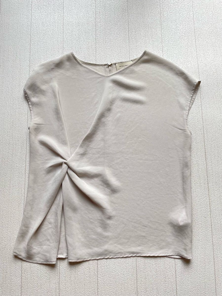 > ユナイテッドアローズ ねじりデザインブラウスF(SM相当)美中古 グレージュ/とろみ/フレンチスリーブ/ノースリーブ