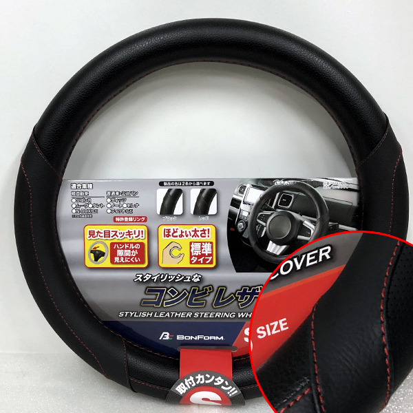 - ハンドルカバー Sサイズ 軽自動車 普通車 等 ユニゾンレザー スタイリッシュ ブラック レザー レッド 赤 ステッチ 6741-01RE ボンフォーム
