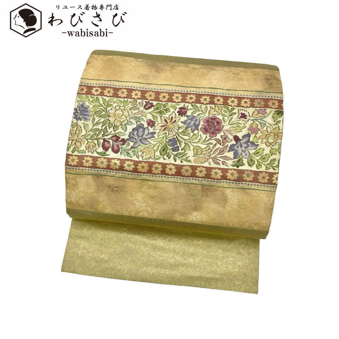 > 名古屋帯 横段花柄織模様 金糸 金色 O-3845 着物 きもの kimono 和服 和装 中古 リサイクル着物 【送料無料】