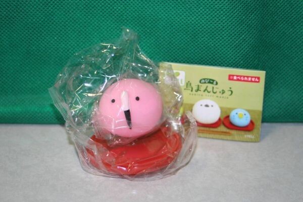 - のび~る 鳥まんじゅう フラミンゴもち マスコット お盆付き ガチャ Yell エール 手放せないもちっと感 ピンク もちもち