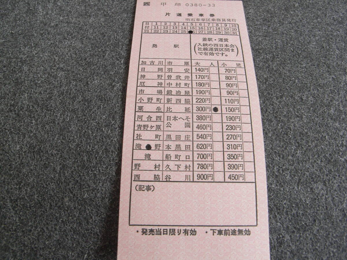 - 片道乗車券 明石車掌区乗務員発行 0380-33 加古川線用 車内補充券 JR西日本