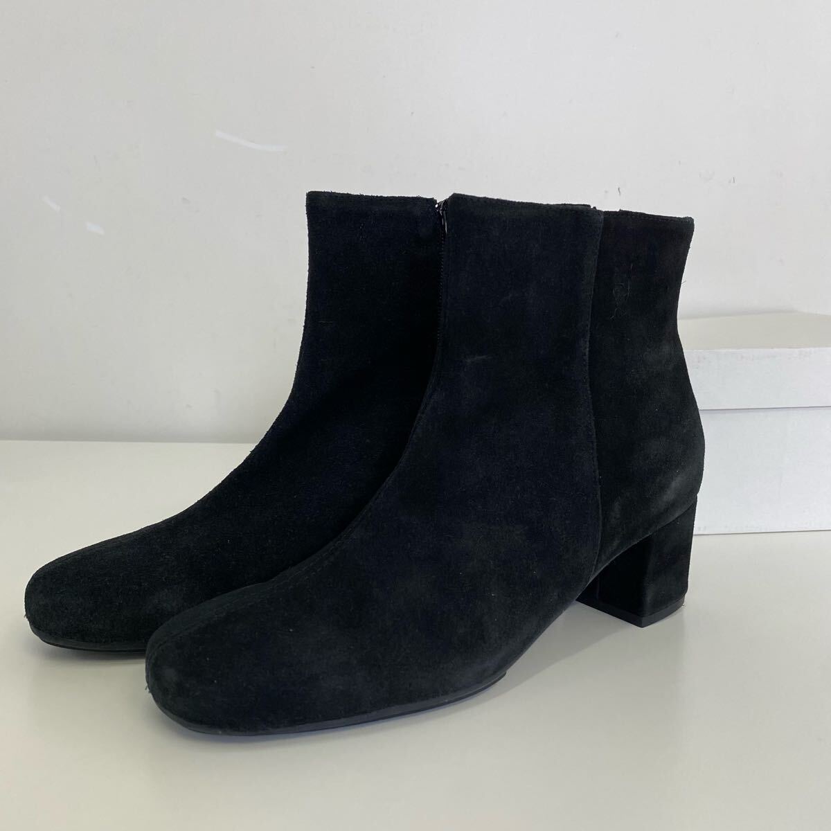 > ★ スペイン製 ショートブーツ 黒 サイズ38 (24cm) ◆ REMME レメ ◆ BEAMS取扱 ヒール高5.5cm スエードレザー サイドジップ◆Z3 RよSU2-02