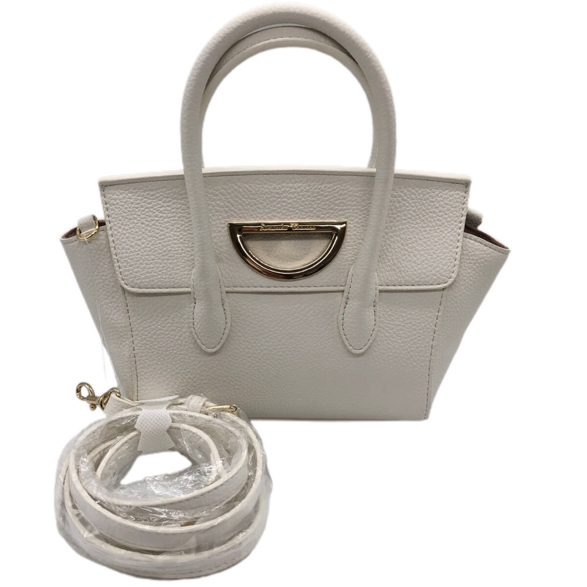 - 【未使用保管】Samantha Thavasa 2WAY ミニ ショルダー バッグ フラップ式 白 ホワイト ゴールド金具 ハンド バッグ サマンサタバサ