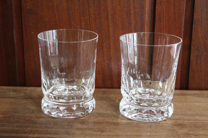 - ヴィンテージ【KOSTA コスタボダ】ロックグラス 2客 ブランデー カット クリスタル 重厚