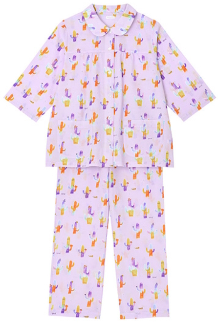 - ツモリチサト★ワコール★8分袖 長丈 パジャマ ルームウェア★Mサイズ★カラフルサボテン★綿100% ローンリップル素材★ピンク/PI