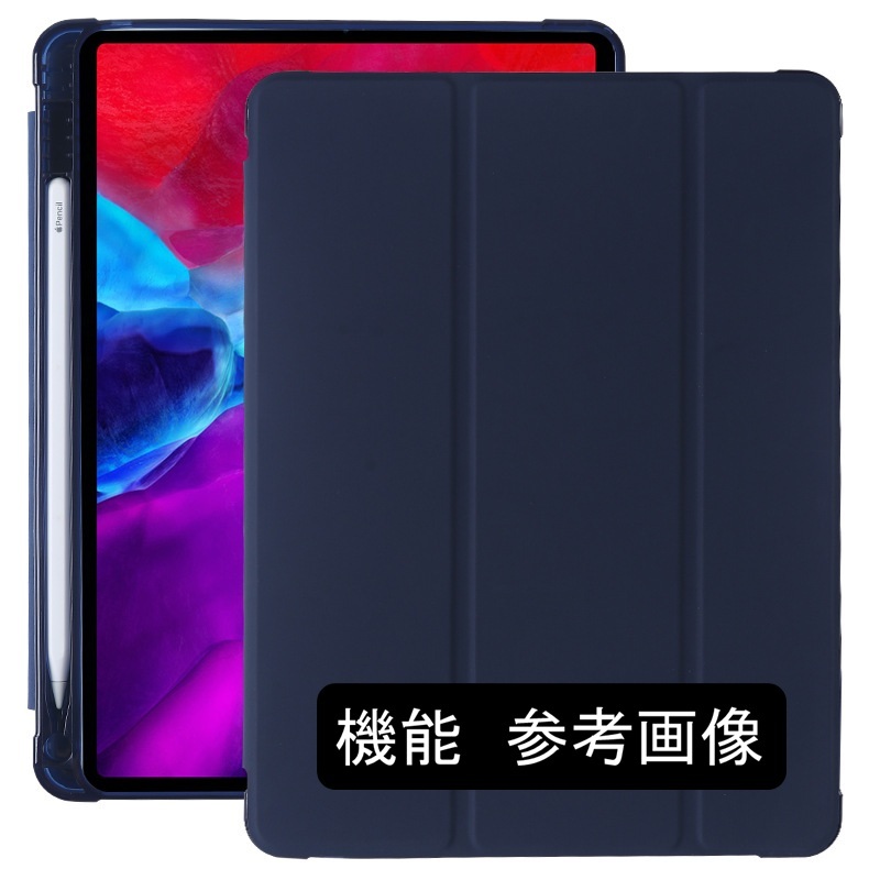 > (ペン収納OK) iPad 6世代/5世代/Air/Air2 共用 ネイビー レザー スマートケース(ソフト素材) スタンド機能 オートスリープ機能付き