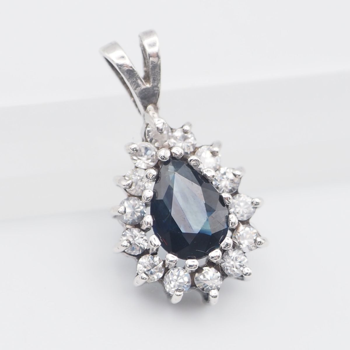 - J591 サファイア? ブルースピネル? ペンダント トップ ラインストーン デザイン シルバー チャーム ヘッド