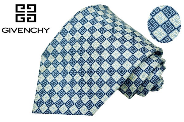 > N-2973★送料無料★GIVENCHY PARIS ジバンシイ パリ★イタリア製 全面ロゴ ブルー系 パターン柄 光沢 シルクネクタイ