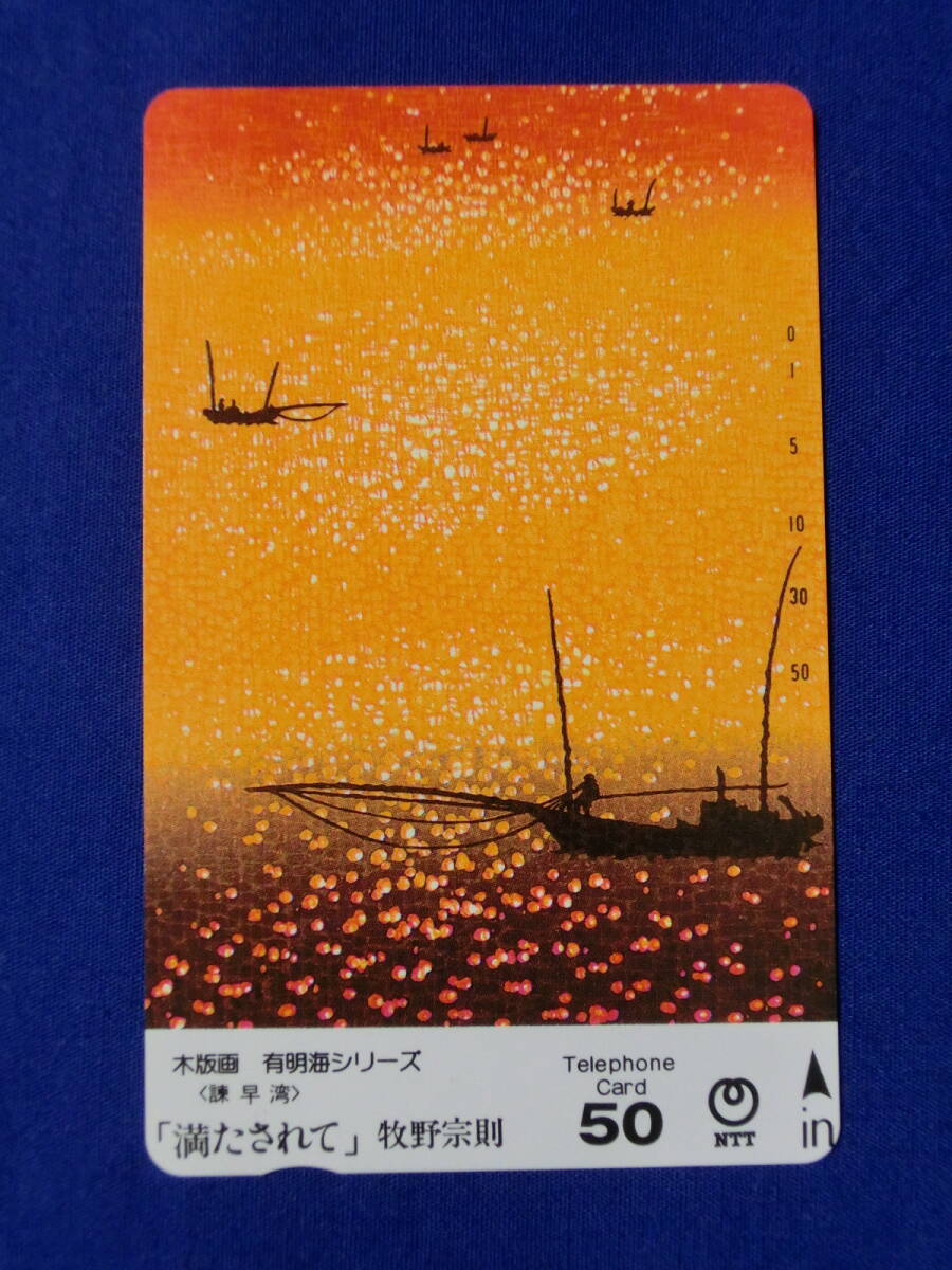 - 木版画 有明海シリーズ 諫早湾 「満たされて」 牧野宗則 テレホンカード 50度数 未使用 送料85円~