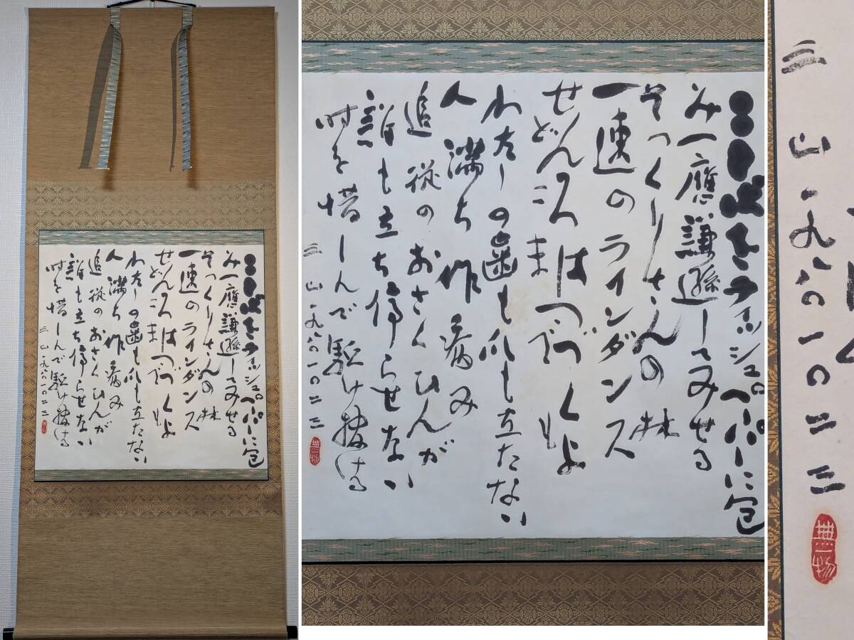 - 【真作】掛軸 木村三山 書詩 紙と魂のランデブー 前衛書の旗手 合箱入 S37