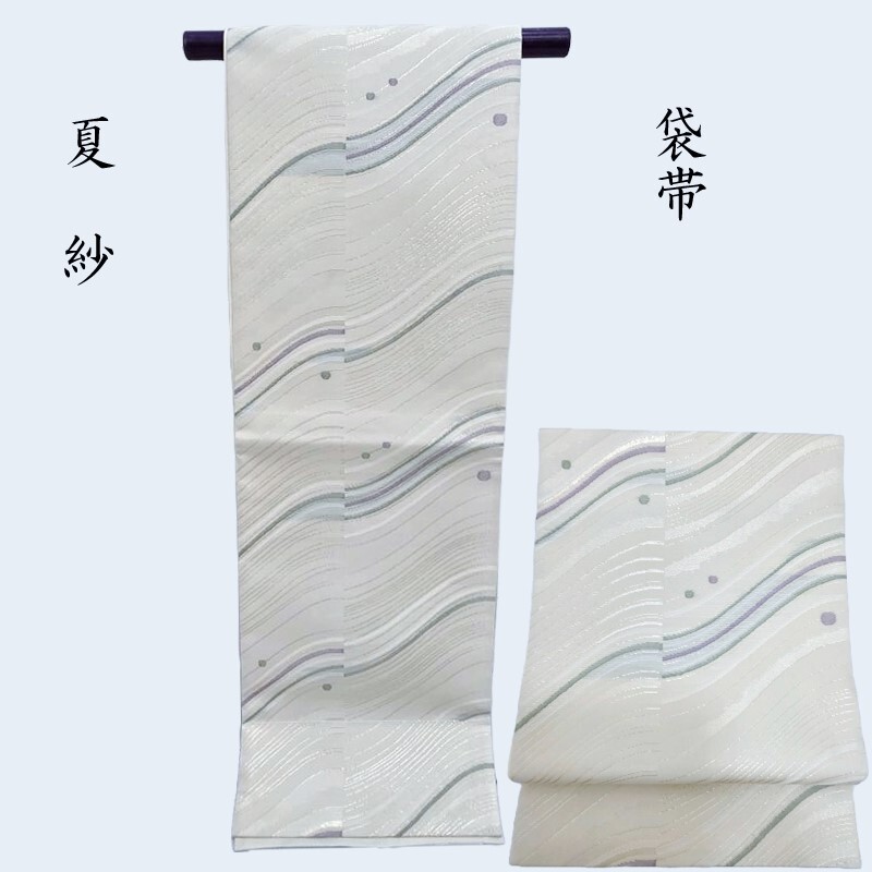 - Club藤★夏 袋帯 紋紗引き箔織 波しぶき フォーマル 小紋から 御仕立上り(3425)