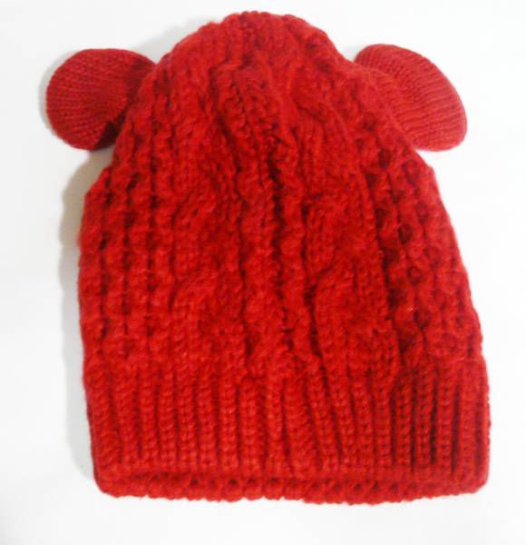- 可愛い ネコ/縄編み猫耳ニット帽/フリーサイズ/レッド