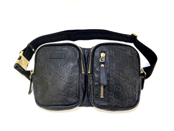 > 【即決】GUCCI グッチ グッチシマ ウエストポーチ レザー ブラック ゴールド金具 246417 213317