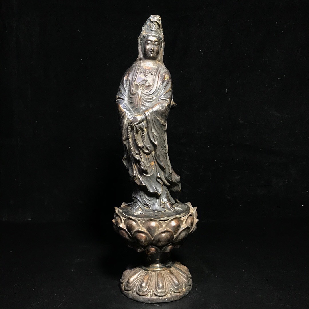 - 【仁】『銅製・泥金・朱砂・站觀音熏香炉・置物・賞物』極細工 古董品 中国古玩 古美術 古美味 時代物 旧家蔵出