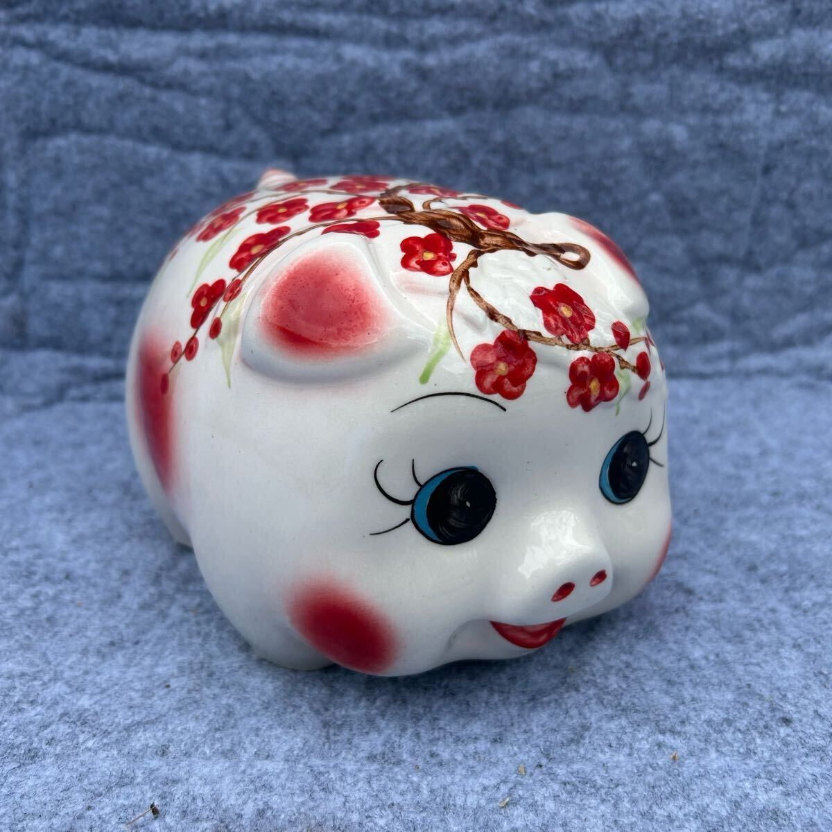 - 年代物!豚の貯金箱 昭和レトロ 陶器 貯金箱 豚 ピギーバンク 梅柄 当時物 日本の貯金箱 伝統工芸 工芸品 美術品 古美術 金 小銭 紙幣