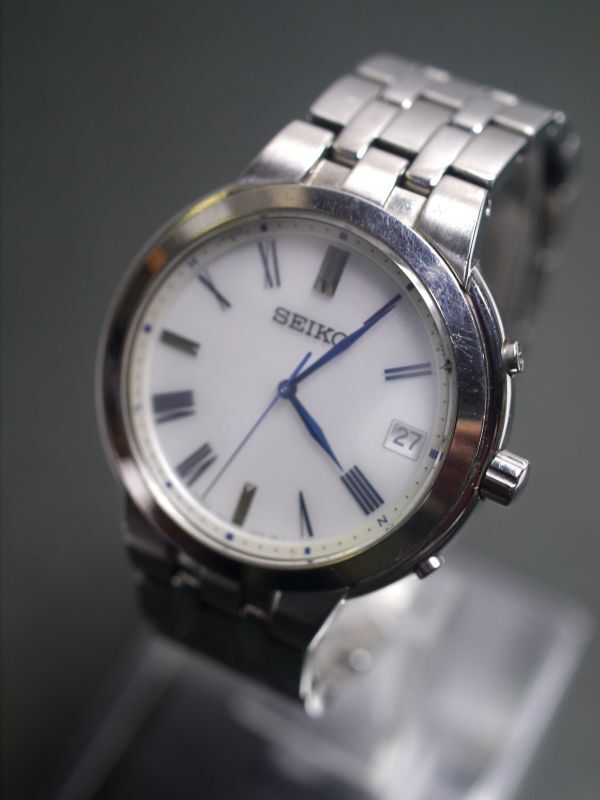 - セイコー SEIKO ラジオウェーブコントロール SOLAR 3針 デイト 純正ベルト 7B24-0BS0 男性用 メンズ 腕時計 日本製 aa920 稼働品