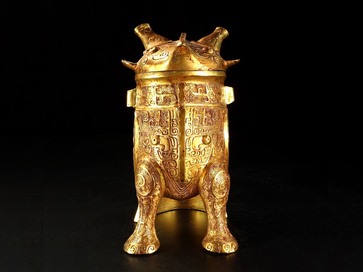 - 「漢代 古銅彫 銘文塗金 鳥尊擺件」旧銅器 置物擺件 賞物 中国古美術 旧蔵出