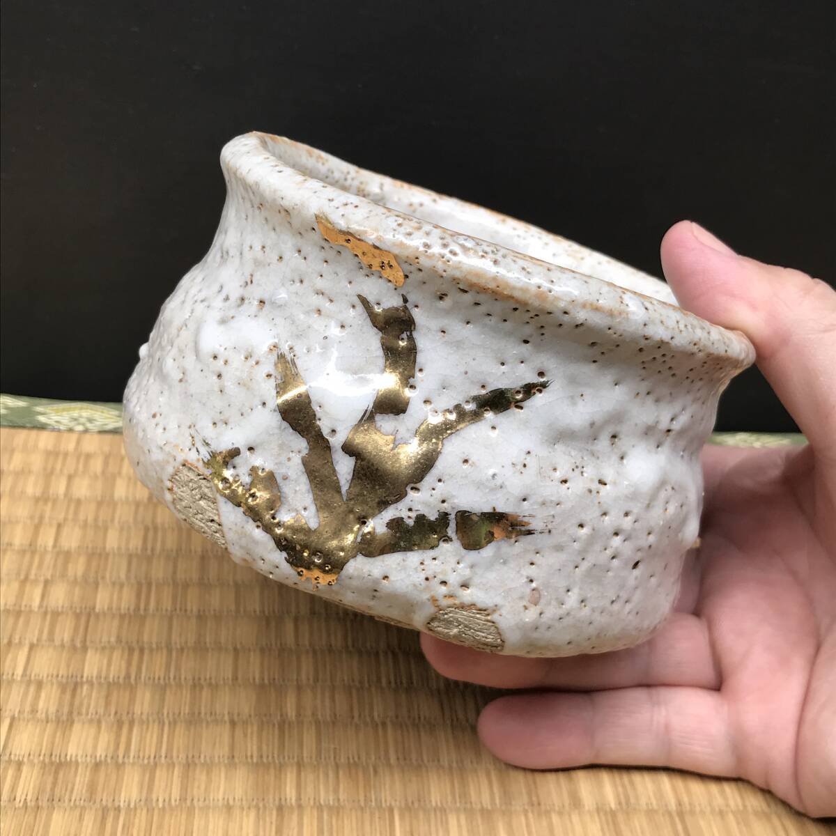 - 金彩志野のお茶碗、作家物?茶器 茶入 茶わん 小鉢 杯 珍味入れ(R70521_A)
