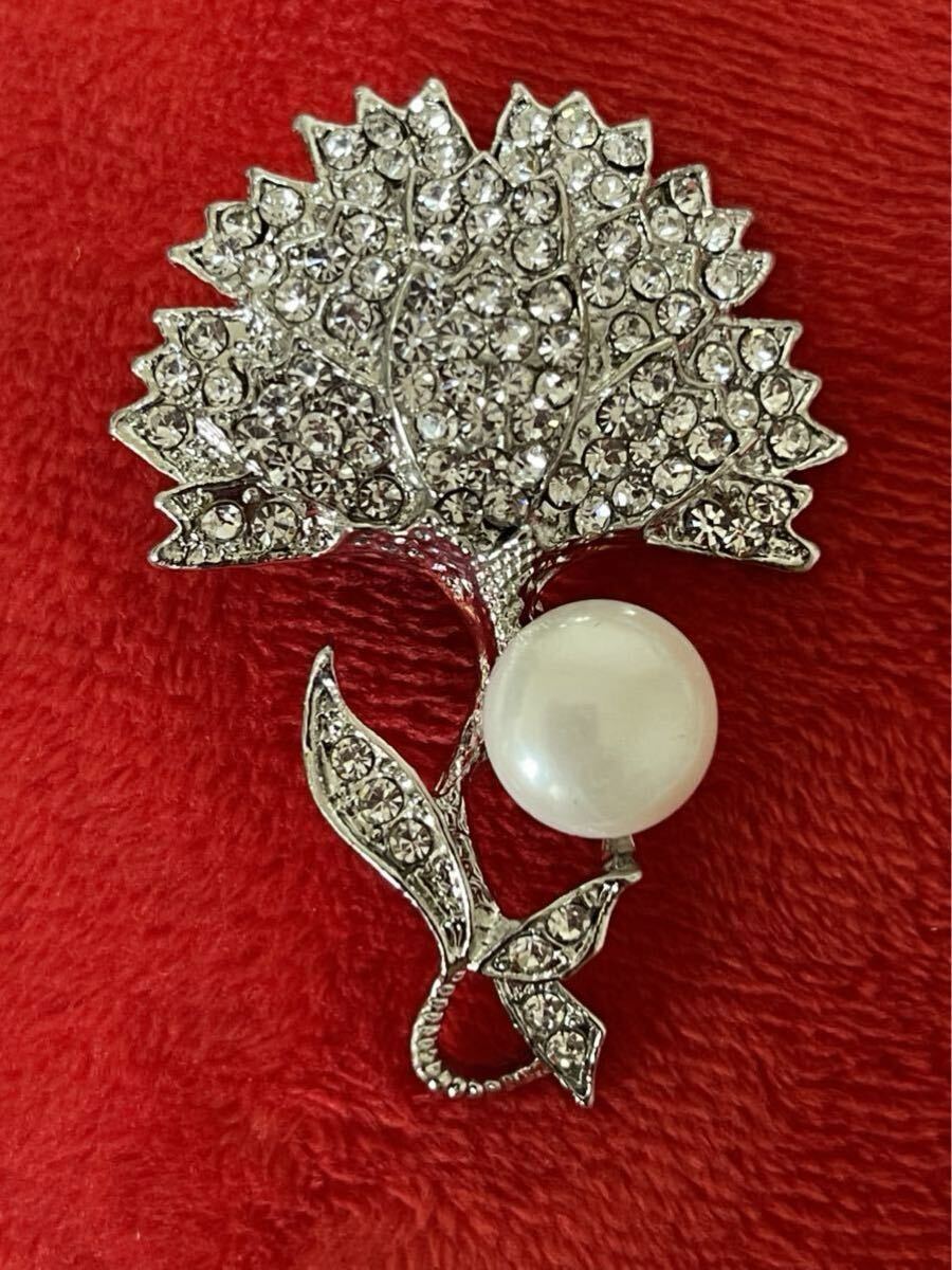 - たんぽぽモチーフしたブローチ ジルコニア&ホワイトパール 結婚式 二次会 パーティ 訪問着 歓送別会等 優雅♪ 上品♪