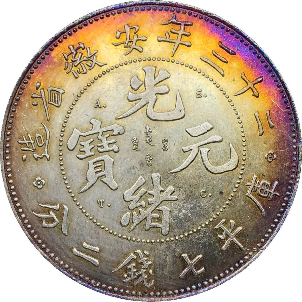 - 中国古銭 大清 光緒元宝 銀幣 美品 希少 二十三年安徽省造 庫平七銭二分 銀貨 重26.2g 大型コイン 貿易銀 大清