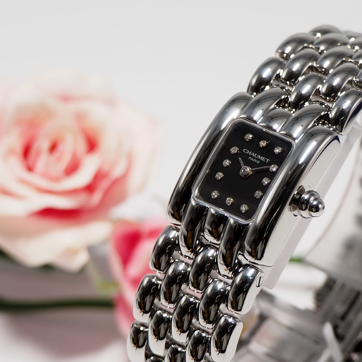 > 美品 メンテ済 ショーメ CHAUMET ケイシス スクエア 12Pダイヤ レディース 腕時計 F865 中古
