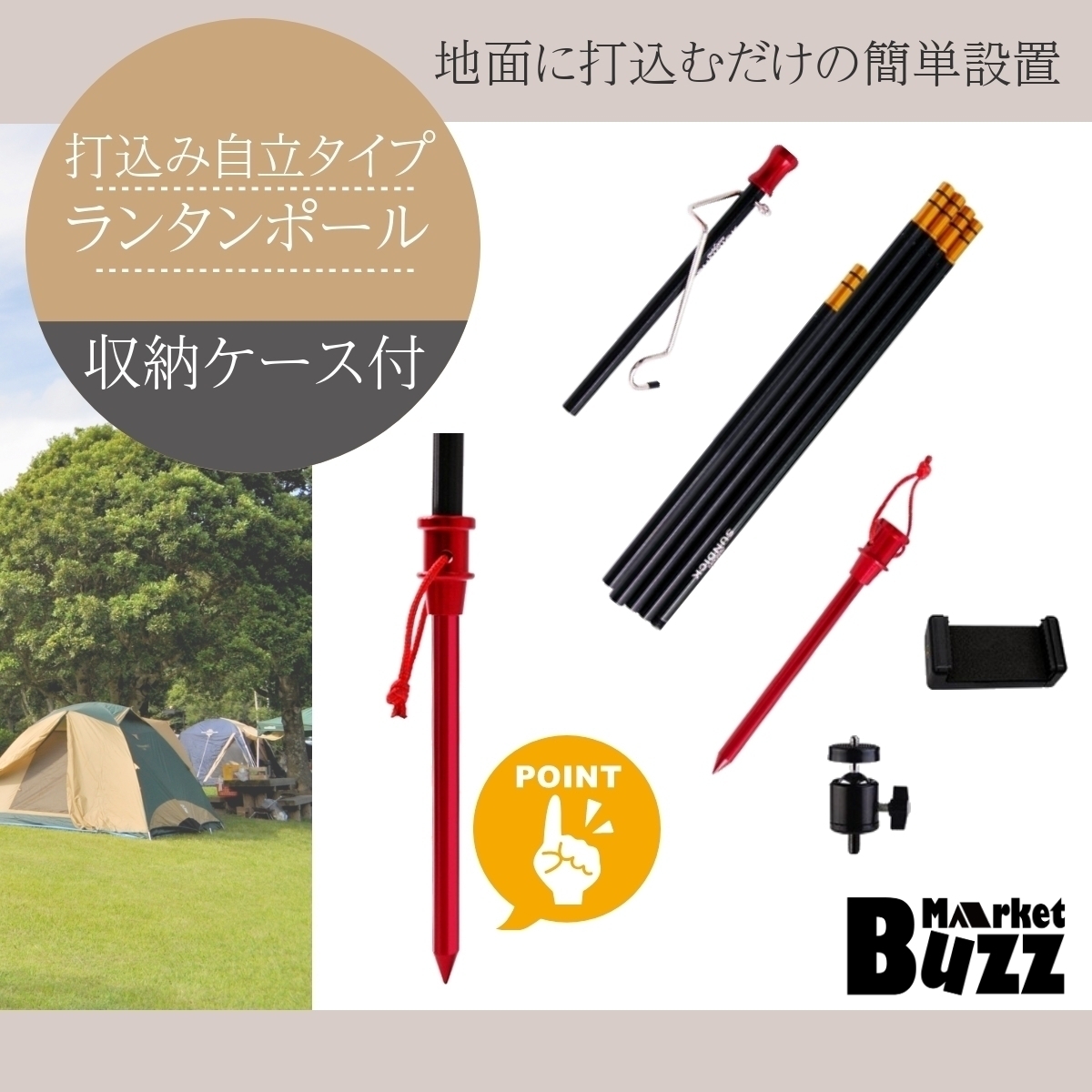 > ランタン ランタンスタンド ランタンハンガー ランタンポール 高さ調整可 ペグ打込式 カメラ スマホホルダ付 アルミ アウトドア キャンプ