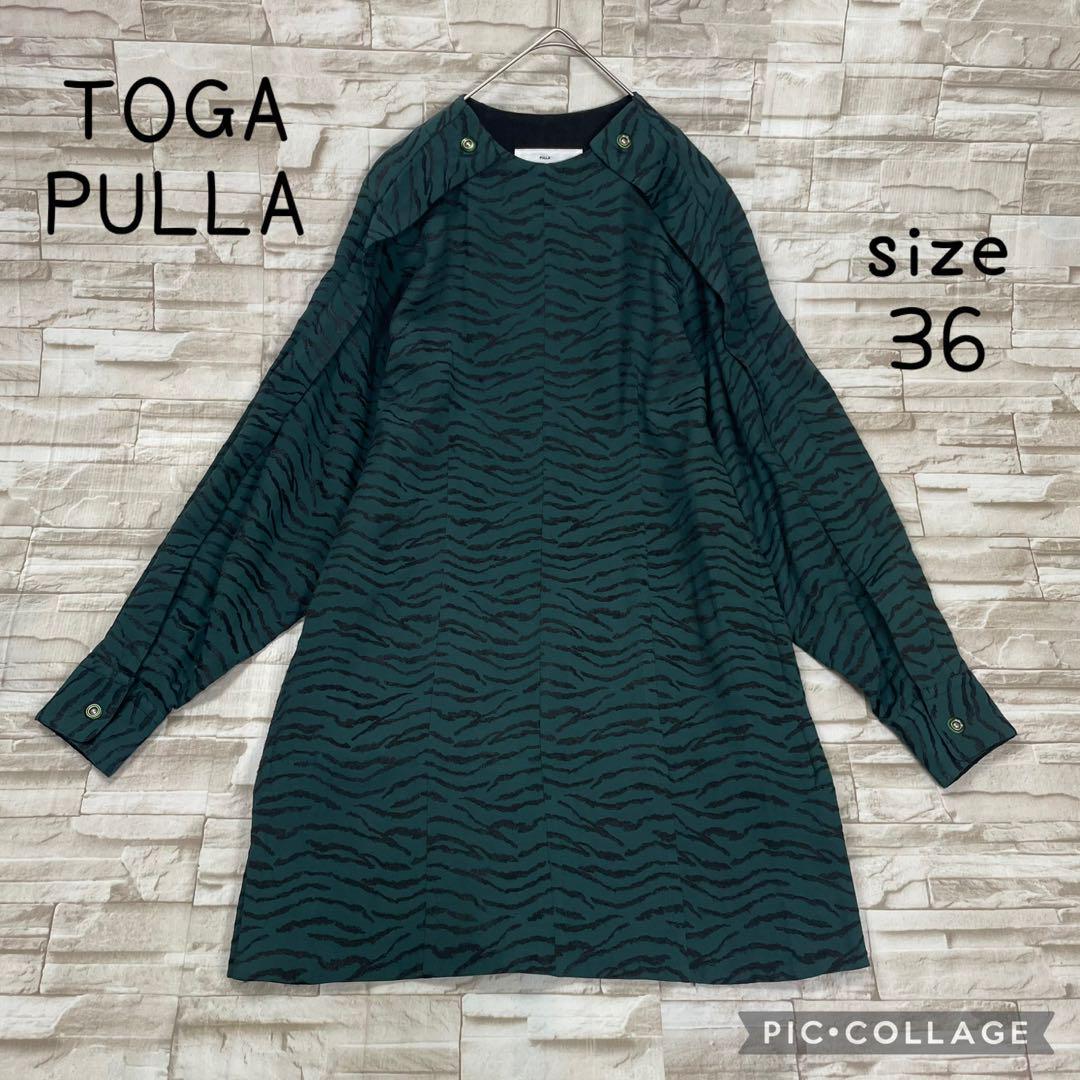 - 【美品】トーガ プルラ ★ジャガードワンピース ゼブラ グリーン ジップ 36