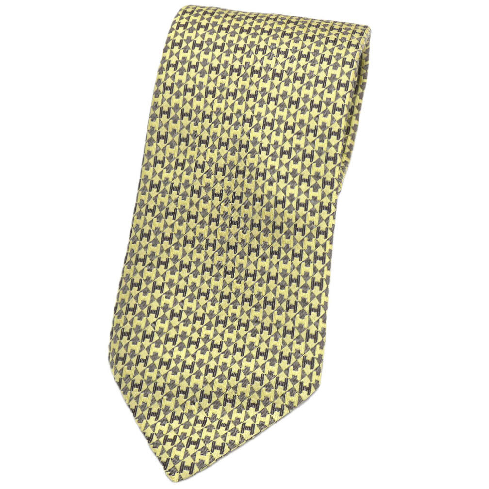 - 極美品 エルメス ブランド ネクタイ HERMES シルク 100% ワイドタイ ジャガード H柄 イエロー 黄色 758872T メンズ OJ10533