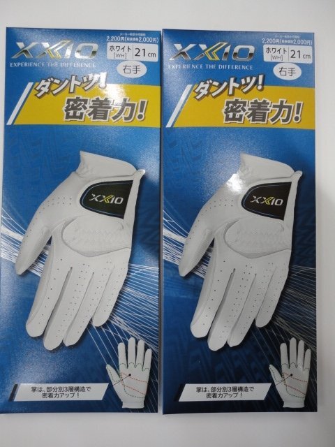 - ■ゼクシオ 高機能 全天候 ゴルフ メンズ 右手用 グローブ x 2枚【WH/21cm】《掌・甲:合成皮革》GGG-X020R
