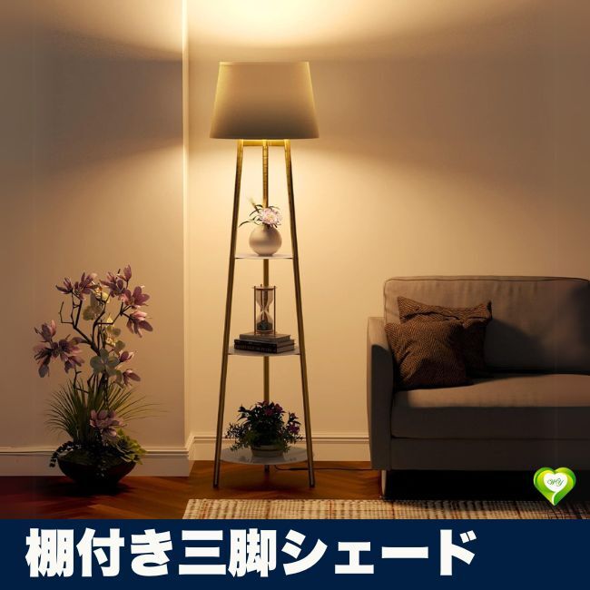 - 【棚付き三脚シェード】フロアライト 間接照明 おしゃれ スタンドライト シェード 三脚 棚付き 寝室 リビング ルームライト 人気 おすすめ