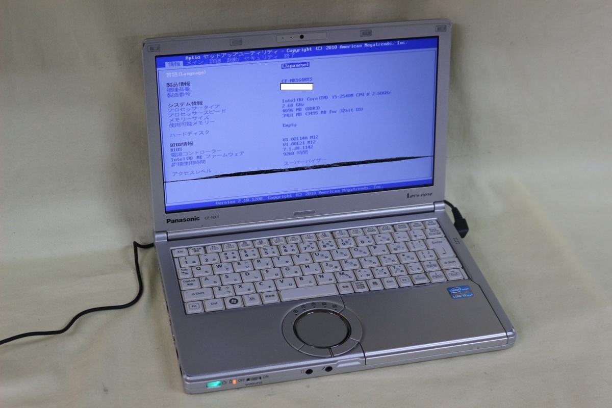 - ジャンク品ノートパソコン Panasonic Let's note CF-NX1 COREi5 メモリ4GB HDD無 12.1inchワイド カメラ内蔵 起動確認済 代引き可