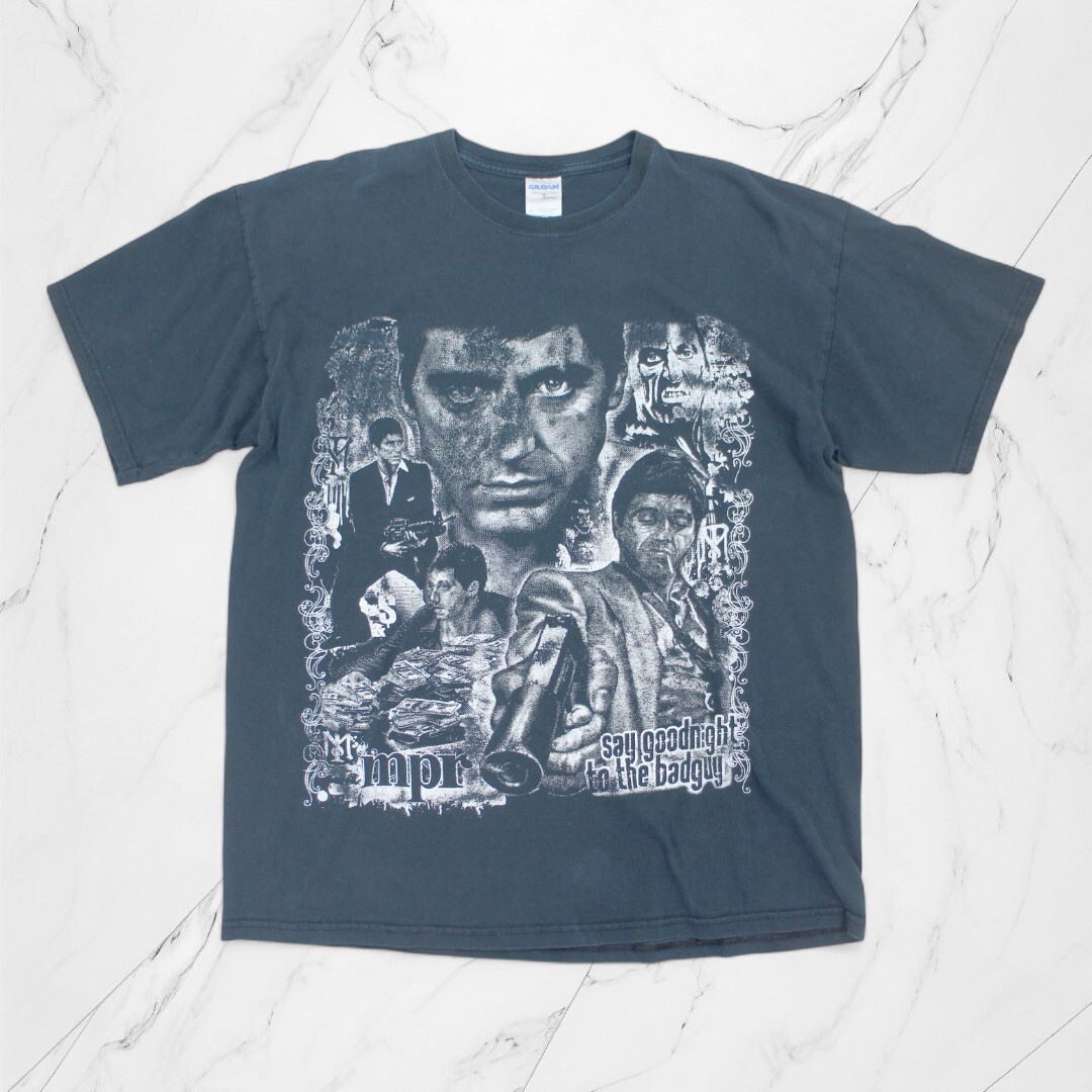 > 古着 SCARFACE T-SHIRTS WASHED DARK NAVY スカーフェイス Tシャツ 【Vintage】