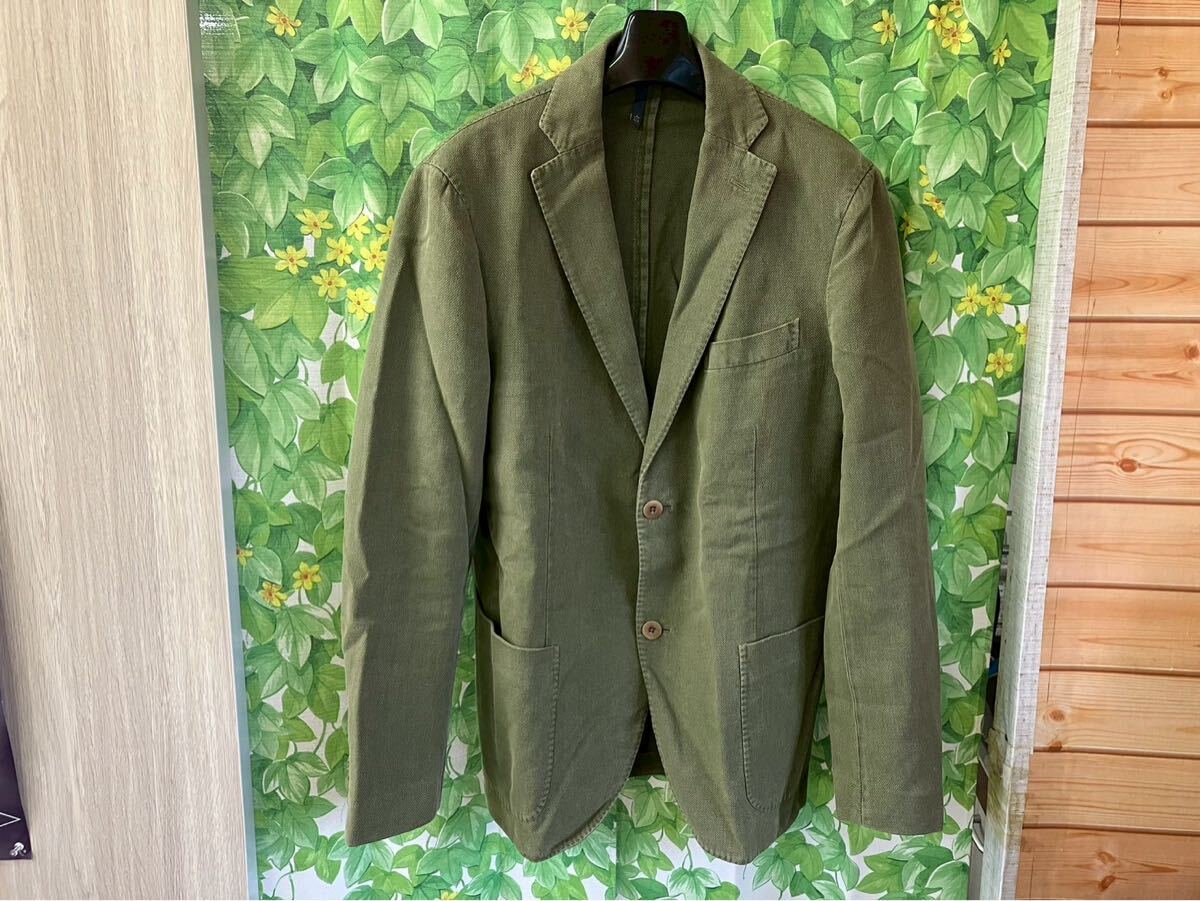 - 【中古品】MONTEDOROモンテドーロ ガーメントダイ コットン×リネン 2Bジャケット カーキ50 テーラードジャケット 現状品