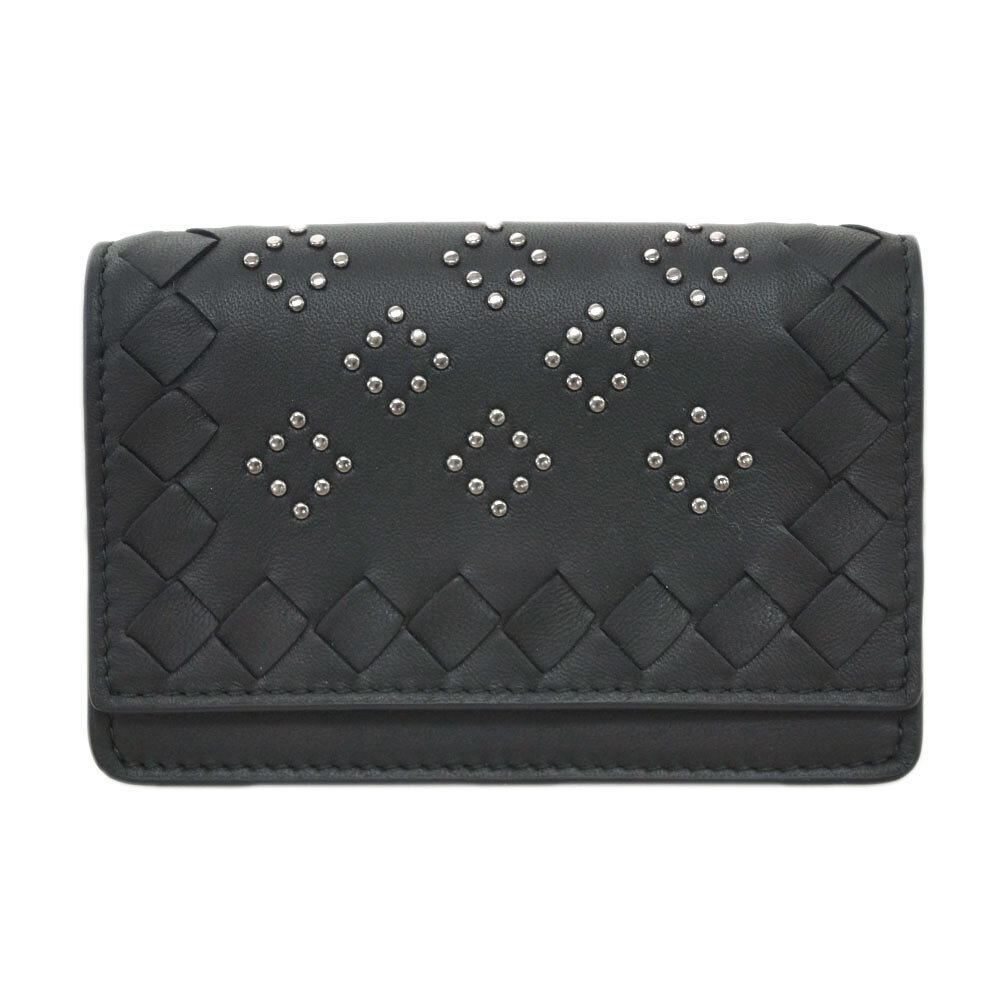 - 未使用 ボッテガ ヴェネタ 名刺入れ 133945-1000 カードケース マチ付き スタッズ イントレチャート レザー 本革 ナッパ ネロ ブラック 黒