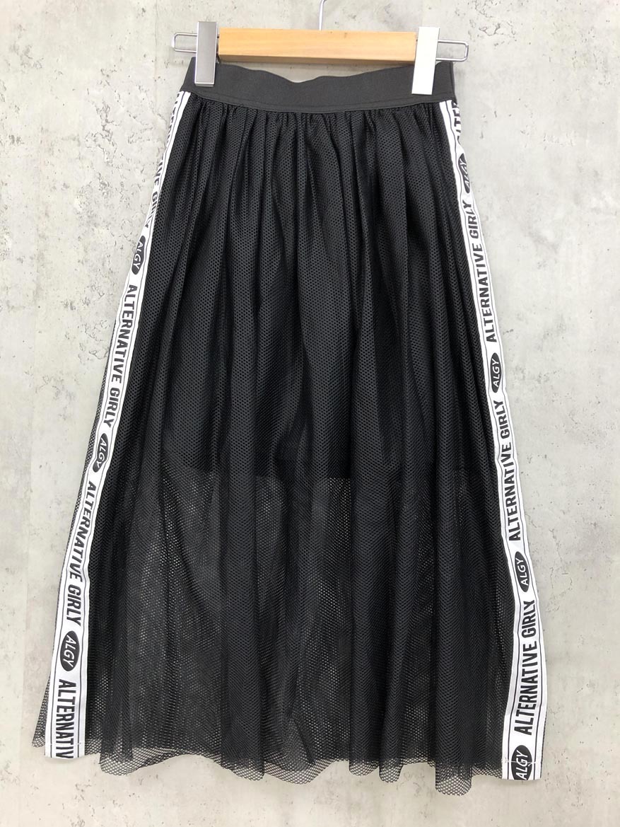 - ゆうパケットOK 新品 algy アルジー メッシュ サイドライン ロゴ ロング スカート sizeS(150)/黒 ■■ ☆ fec9 子供服