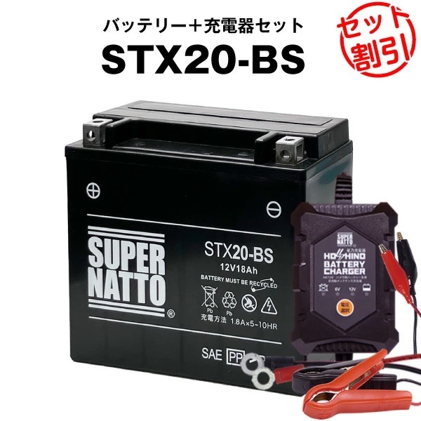 - 【バッテリー+充電器セット】 STX20-BS シールド型 ◆ ハーレー用 ◆星乃充電器 ◆ スーパーナット
