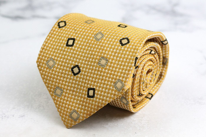 > ジェイプレス ブランド ネクタイ ドット 小紋柄 スクエア柄 シルク PO メンズ イエロー J.PRESS