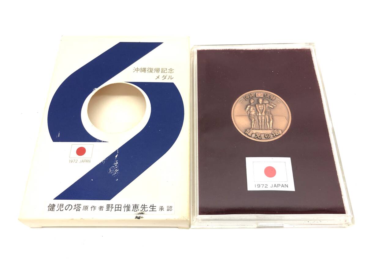 > 保管品 1972年 沖縄復帰記念メダル 銅メダル コイン 健児の塔 原作者野田惟恵先生承認 昭和レトロ ヴィンテージ コレクション ケース/箱 ③