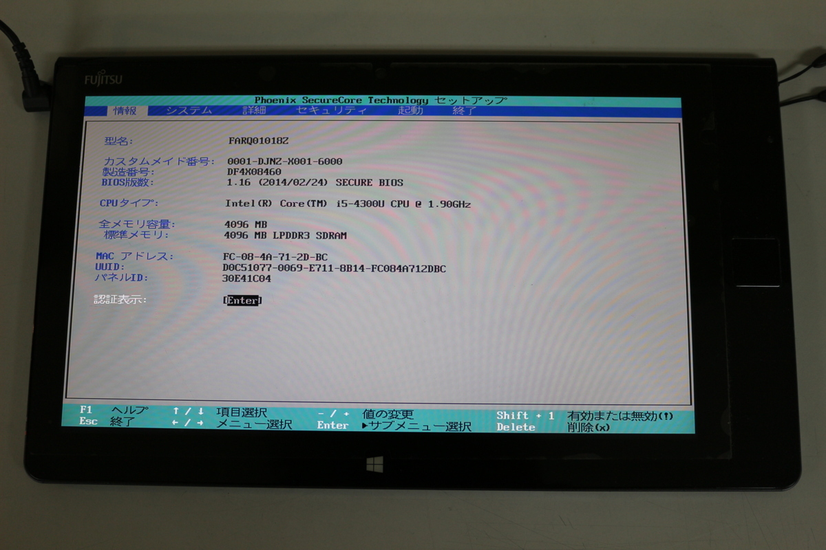 - ジャンク品タブレット 富士通 ARROWS Tab Q704/PV FARQ01018Z i5 メモリ4GB SSD128GB 12.5inch タッチパネル カメラ内蔵 OS無 起動確認済