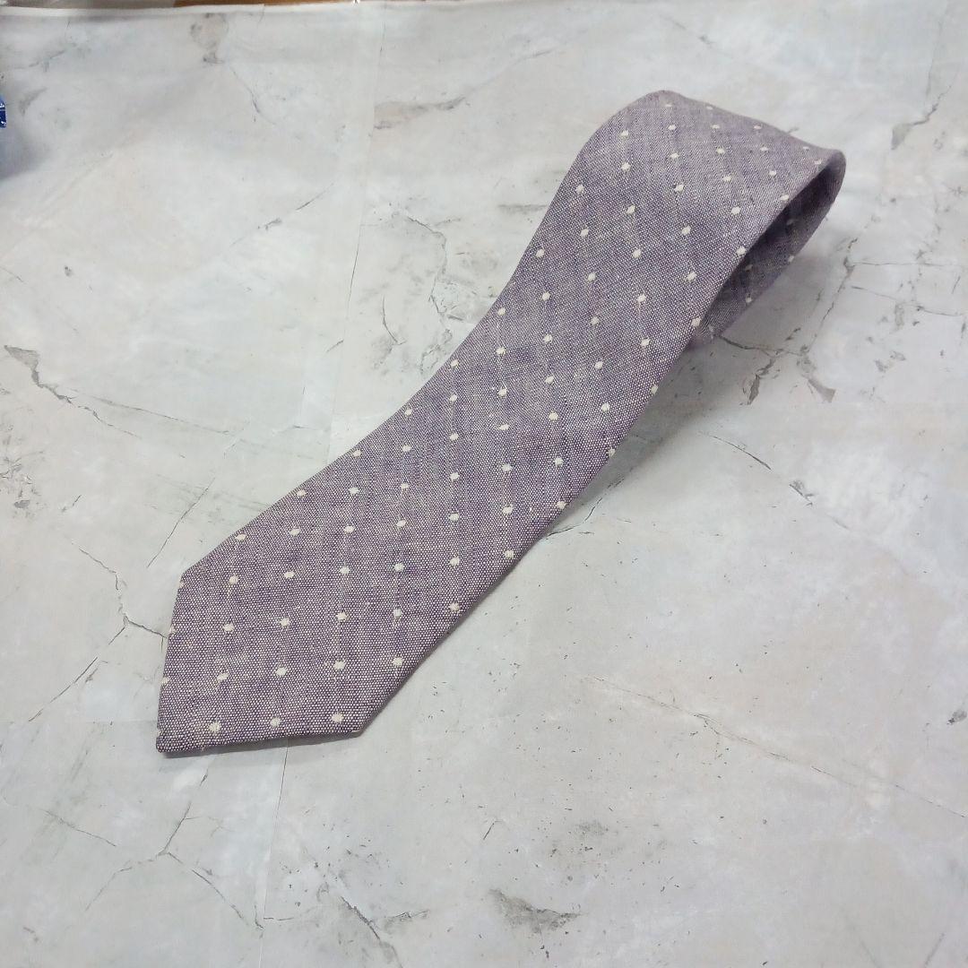 - ブリューワー ネクタイ 薄紫 ドット 麻 リネン【n577】