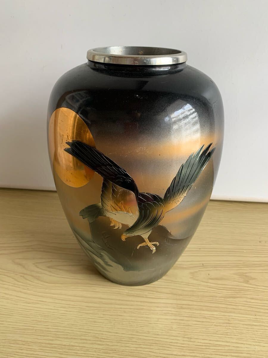 - 金属製 花瓶 鷹と月のデザイン
