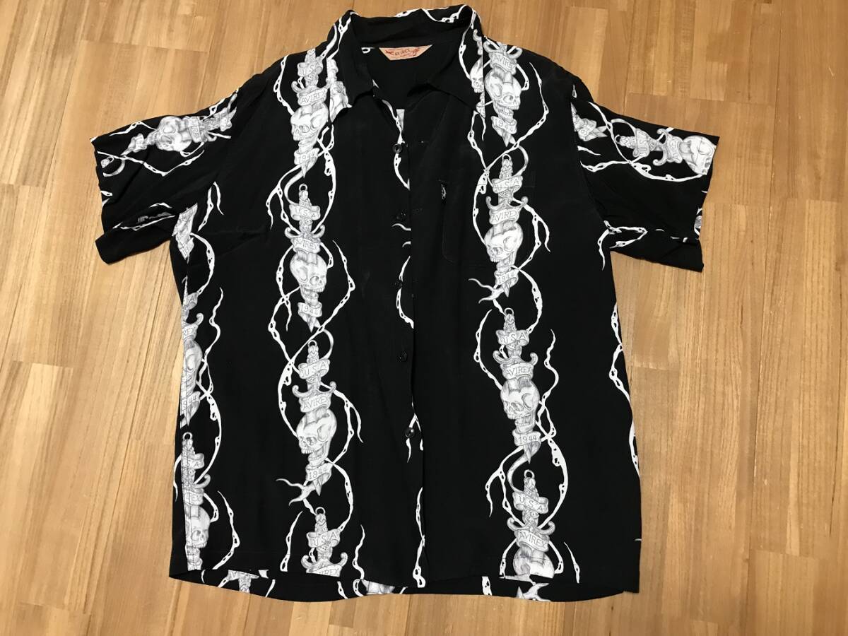 - AVIREX アビレックス アロハシャツ 黒 ②(スカルと剣)