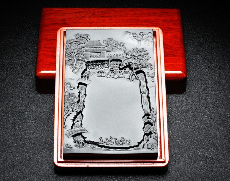 - 中国端硯 無形文化遺産『多くの賢者が集まる』天然老坑原石彫刻歙硯黒竜尾 書道絵画文房四宝原石プレゼレントに最適