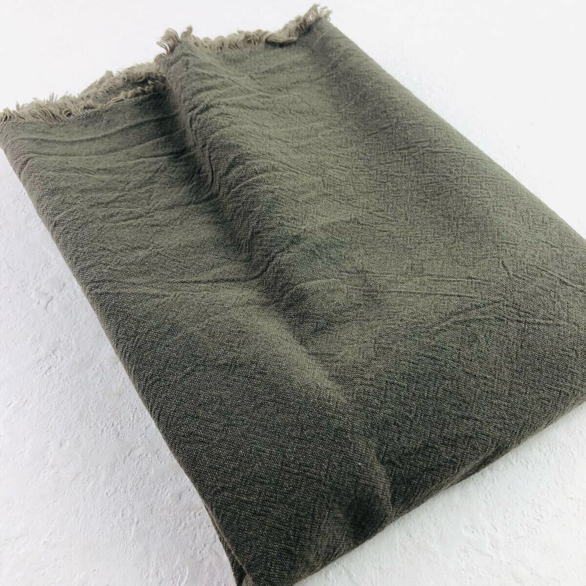 - 50cm 綿麻ワッシャー 105×50 無地 はぎれ 生地 カーキ 先染め ワッシャー生地