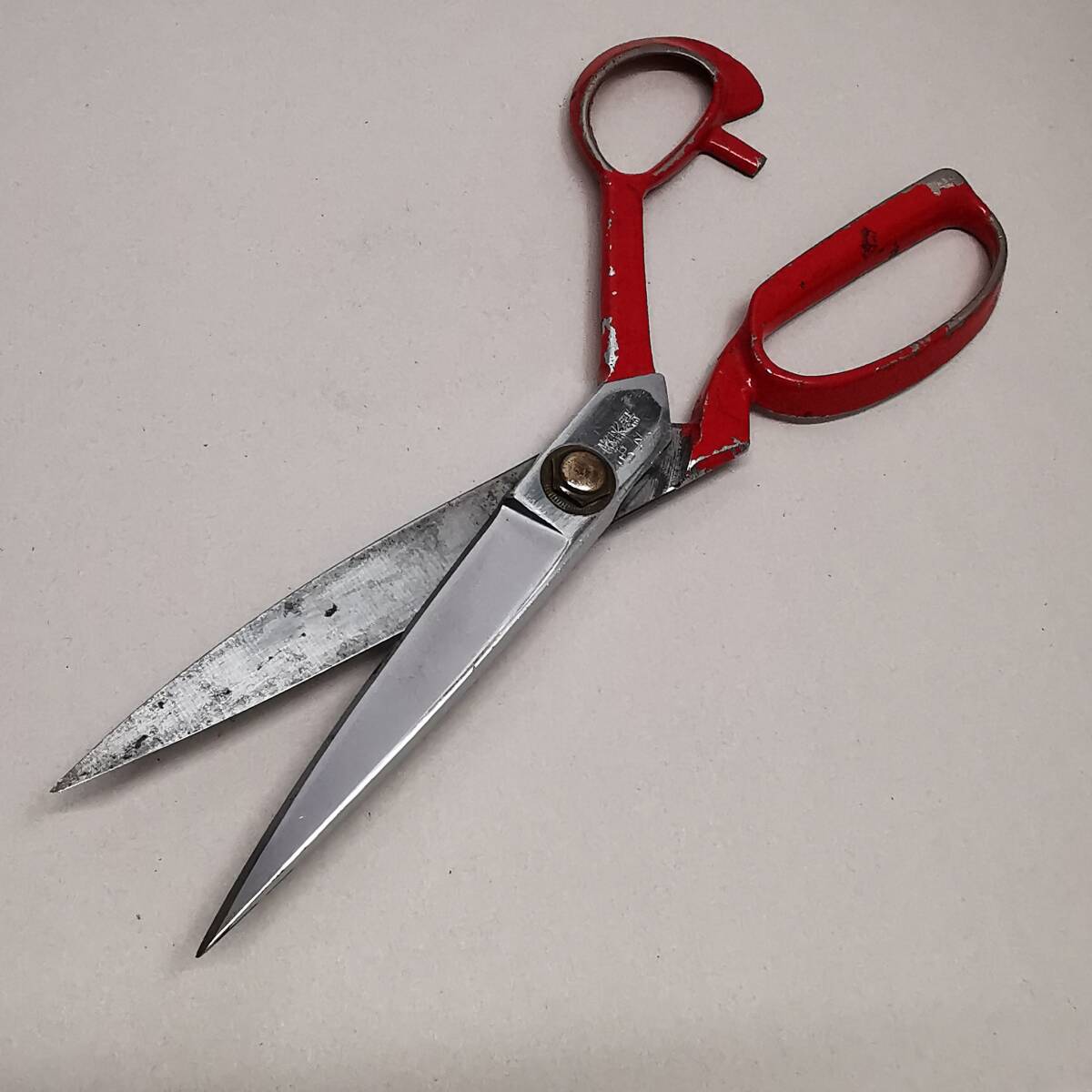 - 古い裁ちばさみ 裁ち鋏◆刻印:安来鋼 美鈴 全長:250 mm◆ ハサミ 和裁 洋裁鋏 年代物 昭和 現状品 個人名あり(所有者)