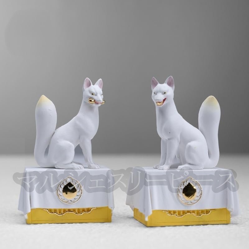 - 狐 一対 木製 きつね 稲荷大明神 お稲荷さん お稲荷様 稲荷神 神具高さ約8.2cm 置物 (Color : B)
