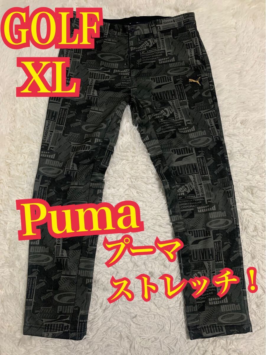 - Puma プーマ GOLFパンツ ストレッチ 中フリース スポーツウエア グレー 総柄 XL