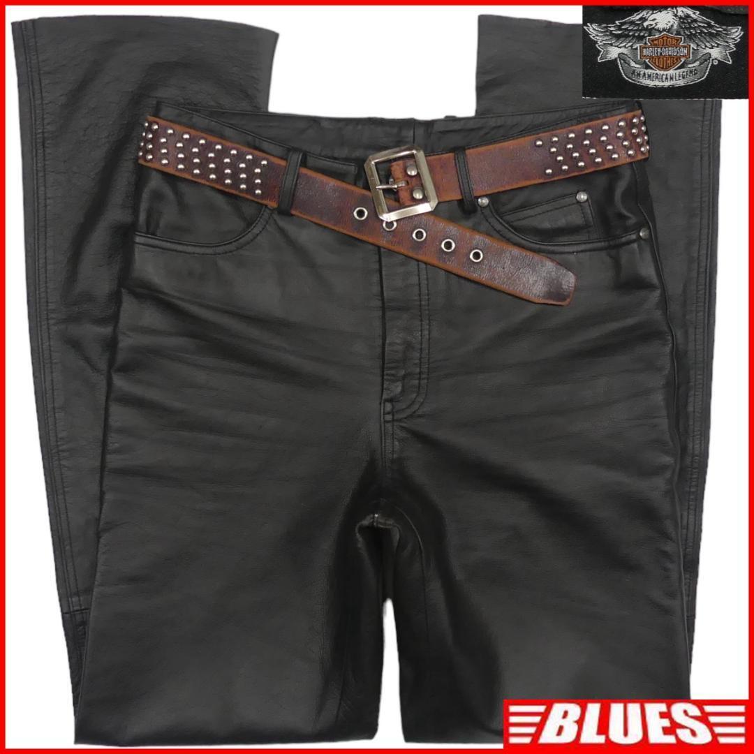 - 即決★HARLEY DAVIDSON★W32 レザーパンツ ハーレーダビッドソン メンズ 黒 本革 ライダースパンツ 皮 パンクロック ツーリング