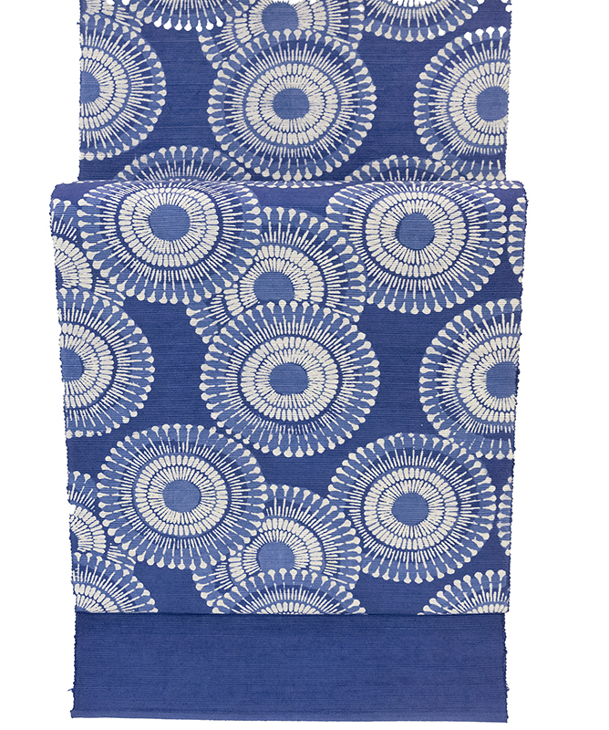 - ※記念感謝祭【仕立無料】「趣味の染帯」京友禅伝統工芸京紅型藍染九寸なごや帯☆お洒落藍染長尺仕様☆紬生地10011997