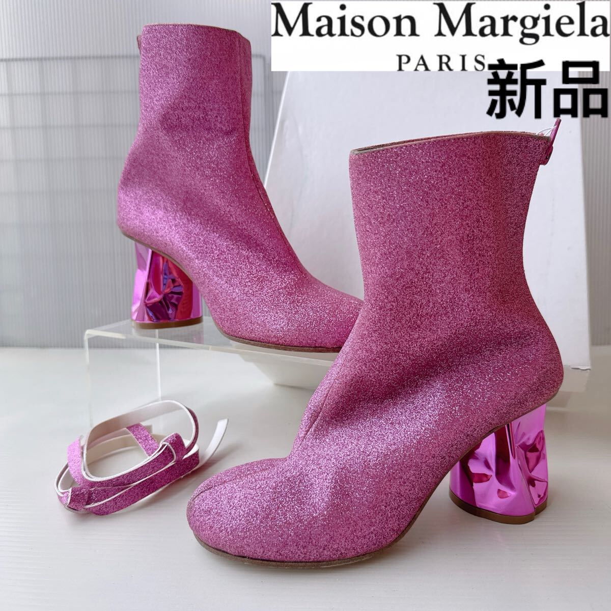 - Maison Margiela メゾンマルジェラ ラメ メタル 太ヒール ブーティ バックジップ ショートブーツ ピンク 新品 37 レーディス シューズ 靴